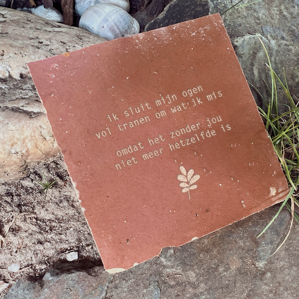 Een tegeltje met een mooie tekst, het aandenken aan iemand die je verloren bent, een spreuk, een mooie afbeelding...